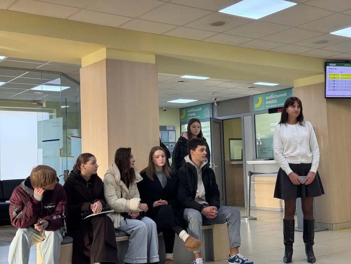 Студенти ознайомилися зі структурою та роботою відділення, інклюзивністю простору, спектром банківських послуг і стандартами добору персоналу. Обговорили кейси щодо гарантування вкладів, особисті інвестиції, а також програми «ЄОселя» та «5-7-9%».